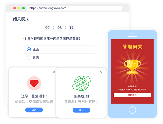 答题闯关模式、练习模式、限时答题、 随机抽题模式等