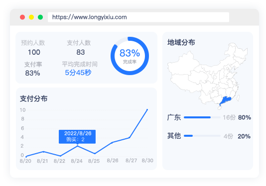 报表页实时生成预约数据的可视图表,轻松掌握预约情况,以便优化动作,提供更好的服务体验。